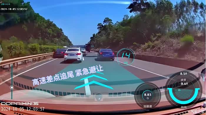 当时突然遇到前方事故车辆,我前方的蓝色车车(左前方已避让失败撞防护栏了)已经来不及了。好猫的紧急制动救了我!而且车身真的很稳,我紧急转向换行车道都没有任何晃动的感觉,幸亏有好猫,算是有惊无险吧!