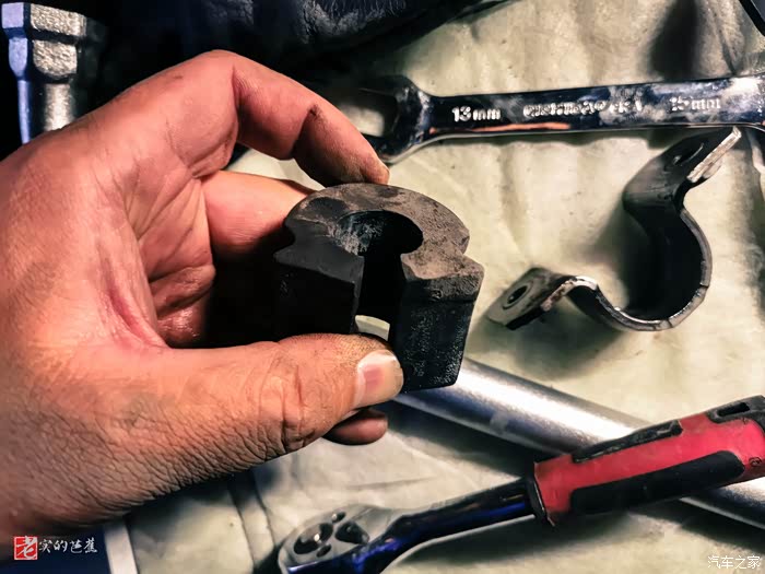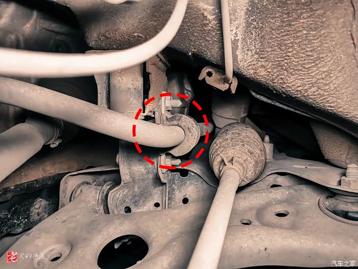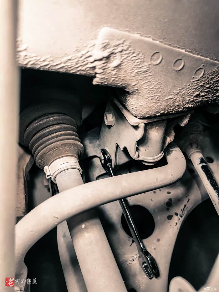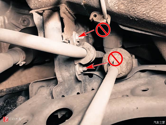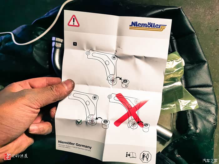 注意一:POLO平衡杆胶套更换螺母拆卸位置找准,不要弄错;