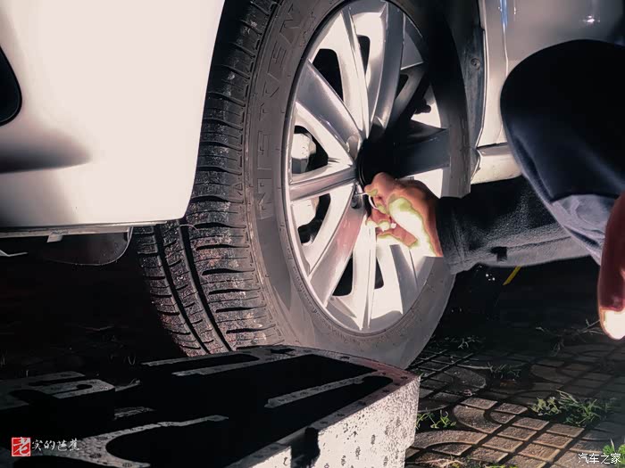 回家打开电脑翻阅网友的帖子,发现螺丝弄错了,这个是厂家为了防“呆”使用的是八角螺母,这个不能拆,需要拆另外一遍。看了之后恍然大悟,这里分享给大家,这里很容易搞错,拆开轮胎便会直接看到这两颗很明显的螺母,就有“拆拆拆冲动”。这两颗螺母不能动,需要拆另外一边。