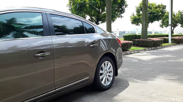 好了,主角登场了,别克君越!之前印象中,君越一直是30W级别的车,超过预算太多太多,而且也是觉得君越实在是太大了,超过了5米;广州市区车位那么少,车子又多,停车好困难;还有屁股那块,好肥好大的感觉。我个子174,总是觉得有点HOLD不住,所以基本没考虑过。那次是去别克4S店看昂科威的,后来销售介绍说君越现在优惠4.6W,回去就给夫人说了一下。正好我们楼下有一台君越,天天都能看到,夫人看了之后,就非常喜欢,说内饰很高档,配色很讲究,豪华感很强烈,远远拉开和同级别车的距离;价格也合适,够大气,符合我的性格特质。其实呢,我觉得我还是追风少年,风一样的男子,喜欢那种发动机轰鸣的ZOOM ZOOM的声浪,哈哈。。。就为买阿特兹还是君越,我和夫人还争执过几次,不是吵架,就是说适合不适合的问题。后来我在阿特兹和君越之间纠结了很久,还是选择了君越,确实要考虑一个长期使用和气质符合度的问题。现在来看,君越确实是我最最正确的选择!