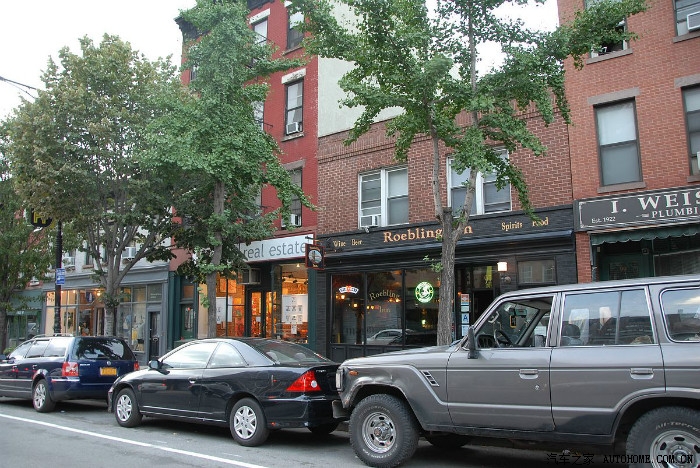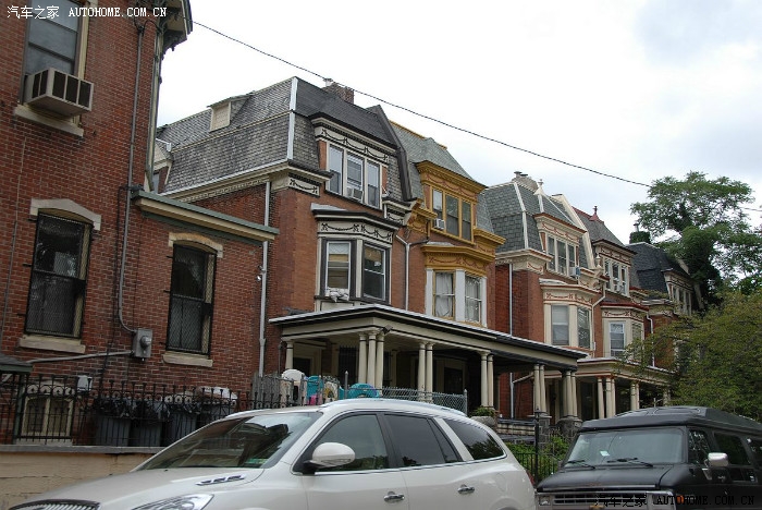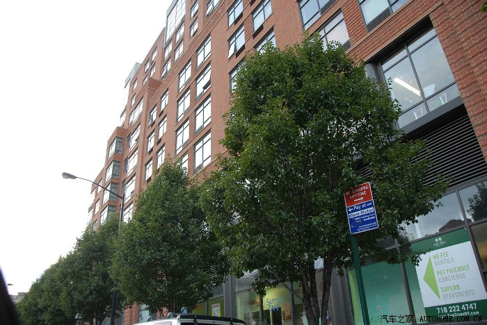 对面街道是斜的,路上有停车位如果有permit的话可以停车,据说周末停车免费。到哪里停车都是大问题啊