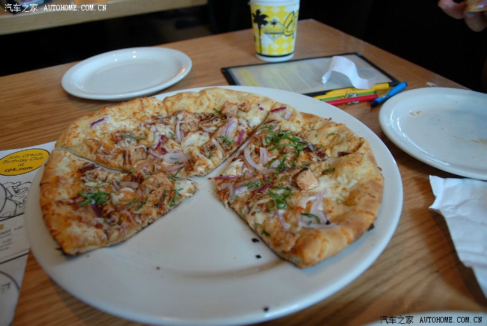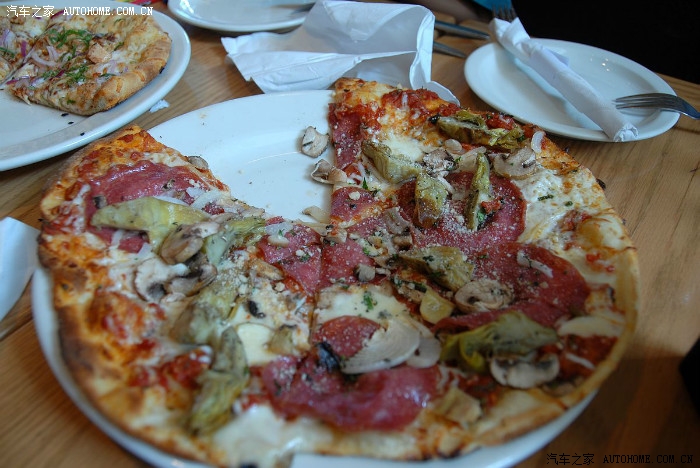 披萨是木柴火烤的,不是电烤的,皮薄、馅多汁,很好吃
