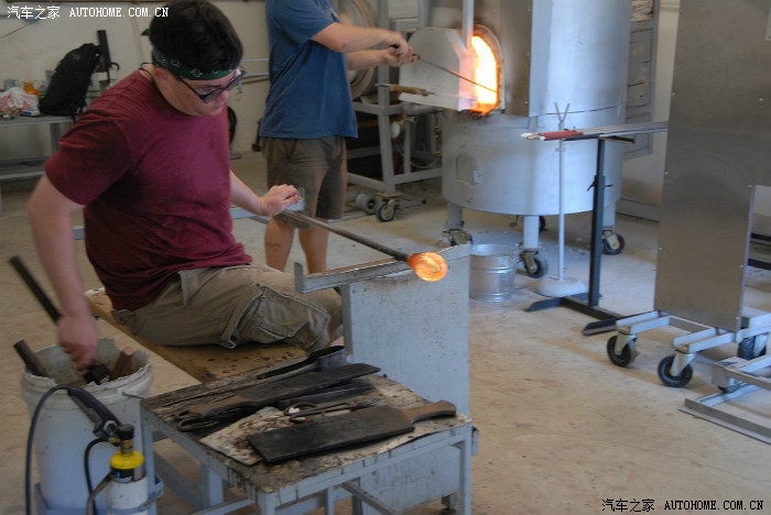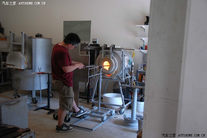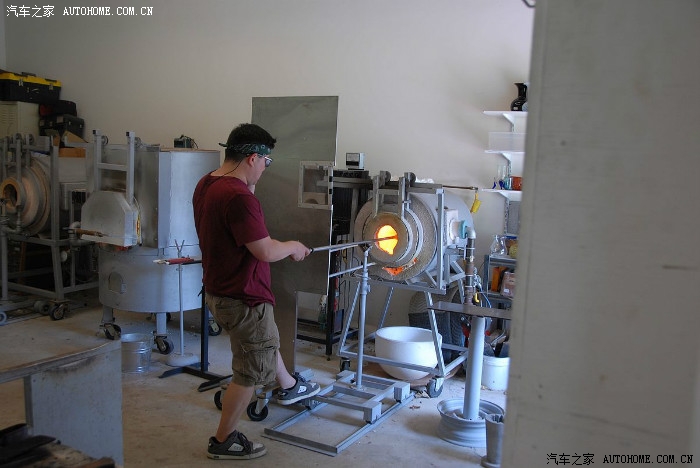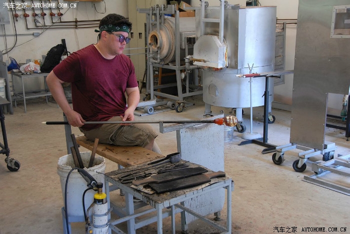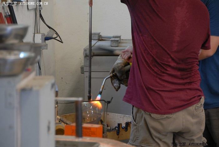 取出一个加热好的杆,蘸出第一块玻璃