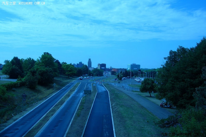 但是进了城了,很多道路仍然跟郊区一样,隔离带都是树,看不到对面的车道,也看不到周围的建筑,像是穿过一片森林