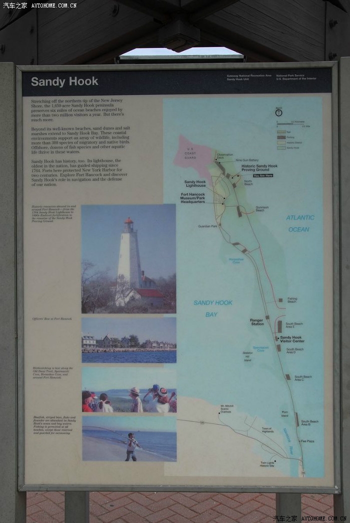 第九天 主要去Sandy Hook,一个天体浴场,当然也可以穿衣服。去的时间不是周末,没什么人。可以看到曼哈顿的天际线、美国最早的灯塔、海岸警备队、曾经的海军住地、大炮实验室场地(大炮真是大炮,炮弹比人都高,随着后来发展,炮弹射的更远,就没法在这个岛上试射了)