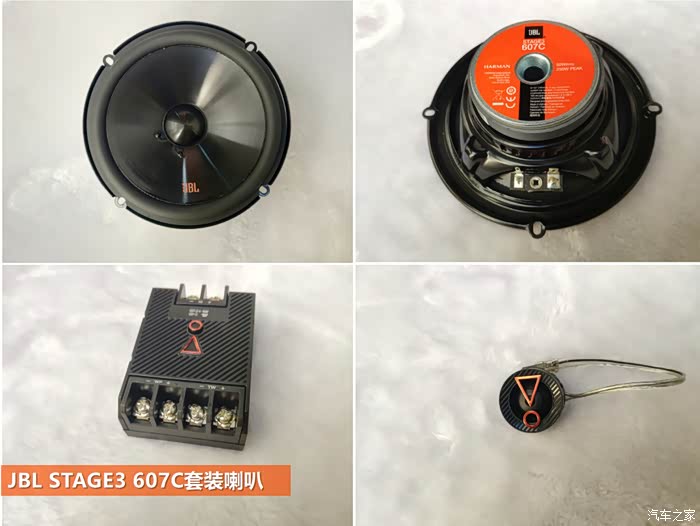 前后门都是JBL的Stage3 607C这个型号,保证前后的感觉一致。这套是属于STAGE系列里面的第三代系列,喇叭的灵敏度比较高,有92dB,整体要比普通的Stage1和Stage2系列音效更加精准,但是价格相差并不多,所以还是很划算的。