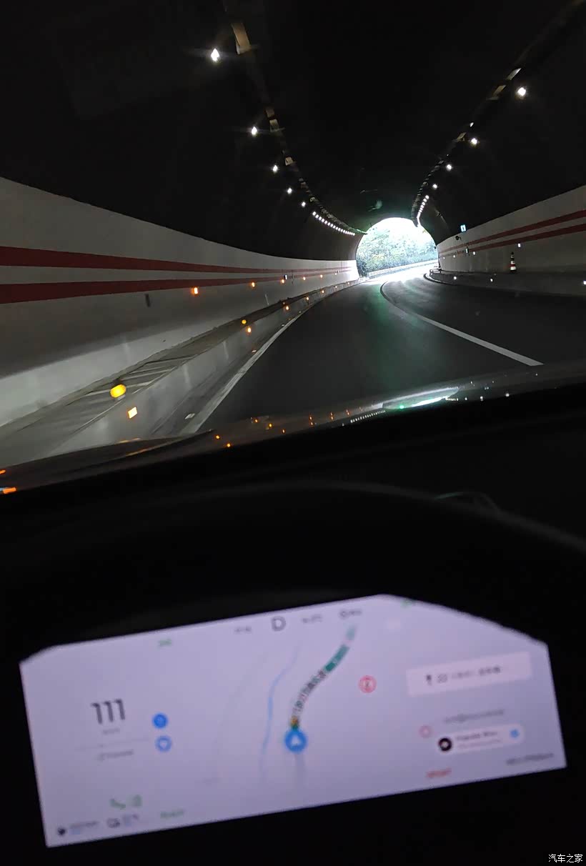 下面再来看隧道表现,图中这种大弯隧道,车道是比较窄的,稍微自动降速后也是轻松通过,纵享丝滑。