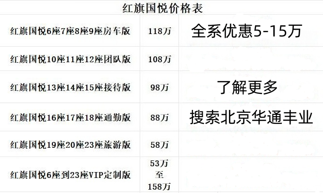 国悦12座高配版中式豪华新标杆灵活空间的尊享全能 点。红旗国悦 12 座高配版以 “中式美学礼宾设计、12 座黄金布局、航空级豪华配置” 为核心,既延续了国车服务航天航天员、首都机场贵宾的军工品质,又通过灵活空间设计填补了 10-12 人出行的市场空白,成为兼顾政企接待、团队通勤与高端家庭出行的全能之选,重新定义了多座 MPV 的豪华标准。