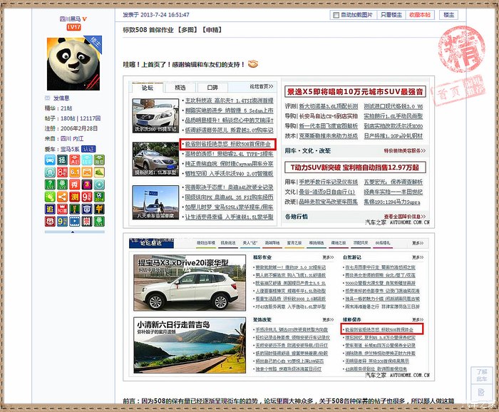 跟着我又花费3天时间,做出了这篇标致508作业贴,没想到不仅上了首页还第一次被刊登在《论坛日报》上。