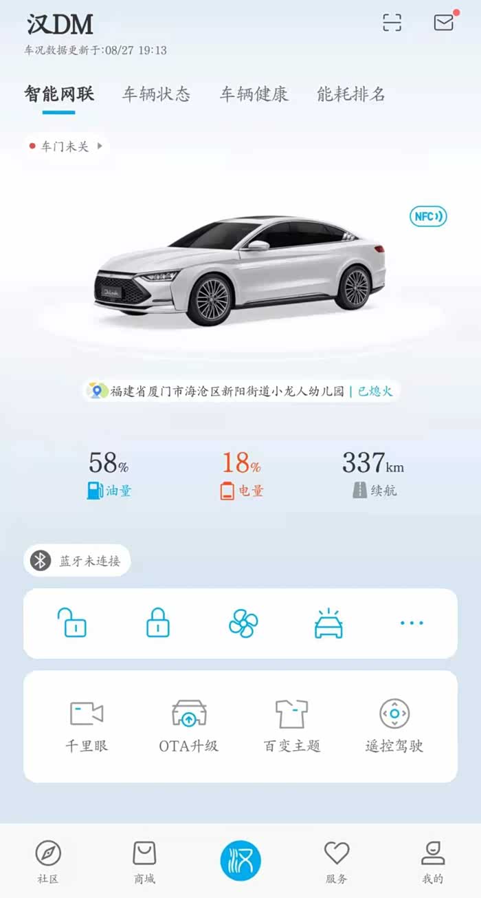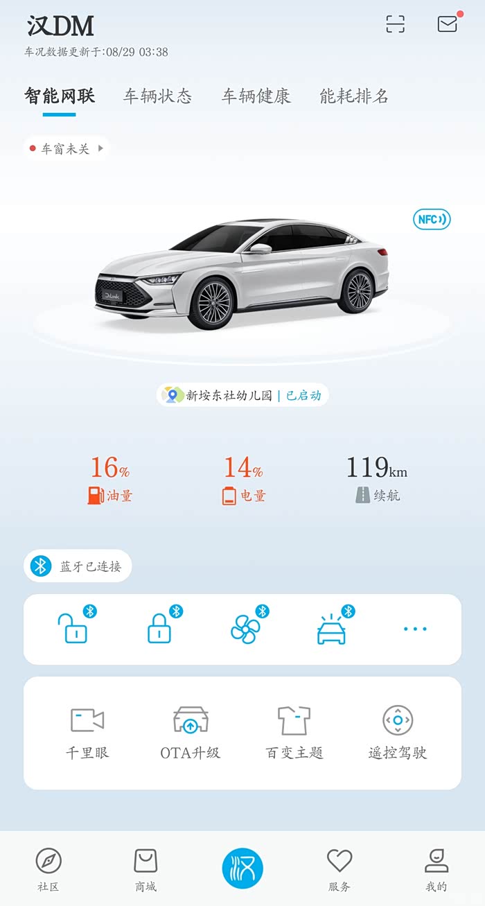 加满油后EV模式回家不够,就用HEV模式跑了约16km,回家后APP上显示还有99%的油
