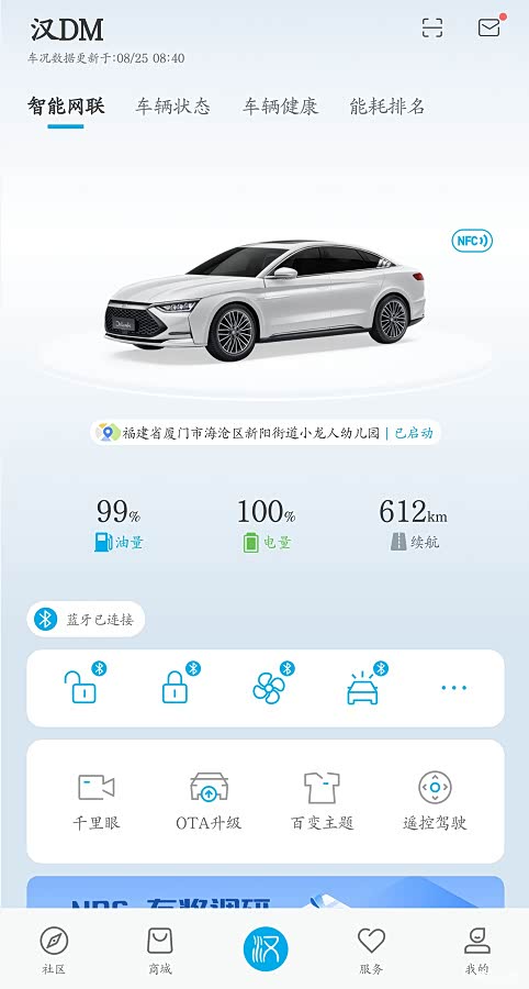 APP显示油量剩余99%,电量100%,续航612km