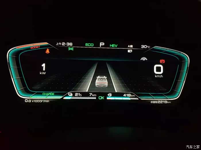 当电量低于14%的时候这发动机会开启原地发电模式,电充到15%便会自动停止,这个时候车内噪音非常的明显还会伴随着轻微的抖动,这个时候也基本上就完全的当成燃油车在跑了,如果是在市区路上堵车或者等红绿灯的的话那就特别的难受了,比普通燃油车难受多了旁边不知道的人还会以为你这车是有啥毛病似的停着发动机还哄哄哄的作响,但是如果车速提起来后跟普通燃油车一样便没有啥问题了同时2.0T的动力也是非常的足