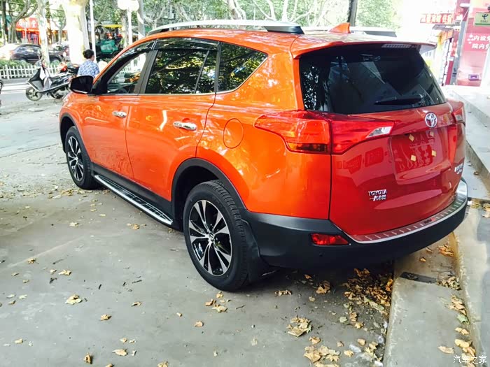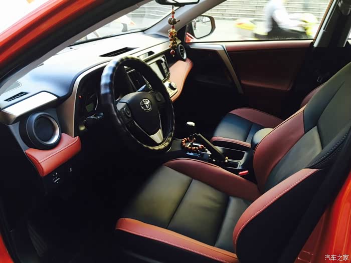 丰田.RAV4 2015款 开过很多车,不喜欢修修补补,丰田车省心。全景天窗儿子也喜欢,城市四驱完全够用。内饰真皮橙色双拼瞬间高大上。 2.5排量动力杠杠的。后排空间大,能坐4个大人。宽度是合资品牌里20-30万车里最宽的。后排座椅还可以调节角度,跷二郎腿还有空间。