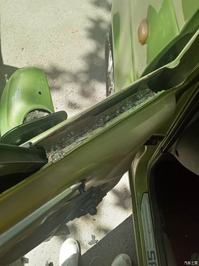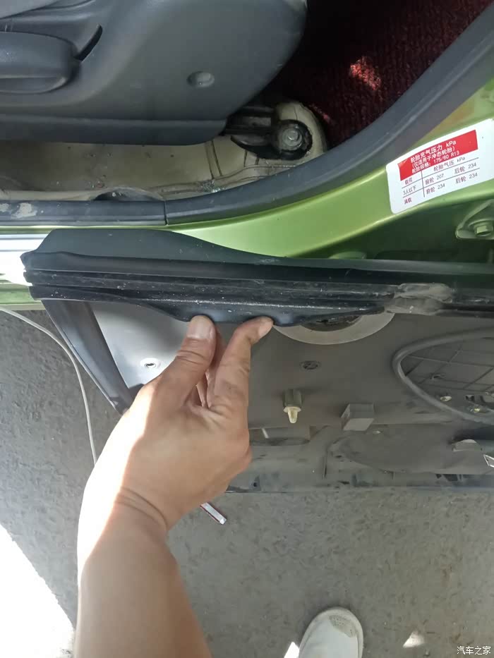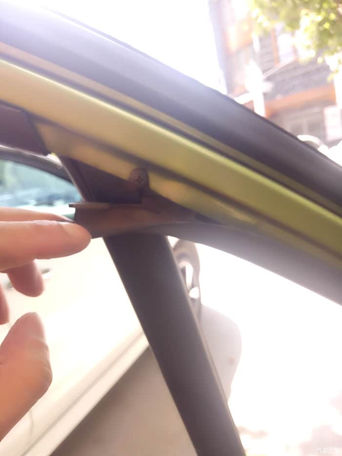 把门板取下来后,把水槽里的玻璃清理干净。忘记拍三角胶条取下后的情况,实在抱歉现在口述一下,三角胶条拆除后,一定要把里面残留的玻璃渣清理干净,不然新玻璃不能安装到位。还有要把门窗玻璃支架拆除,不然三角玻璃就放不进去。下面有图希望对小伙伴有帮助,安装过程就是这样了,三角玻璃完成安装后,依次把门窗支架、倒车镜等装回原位就可以了。
