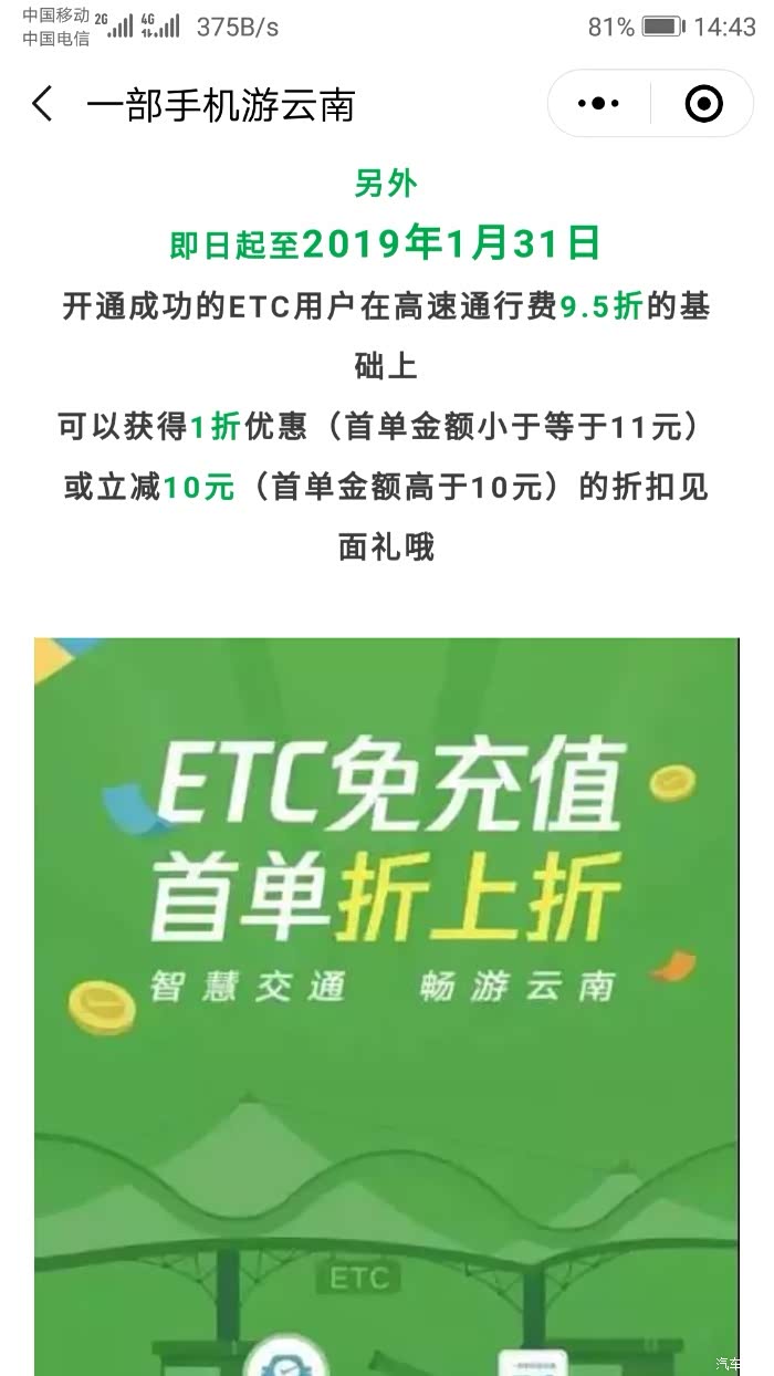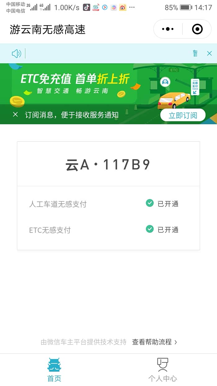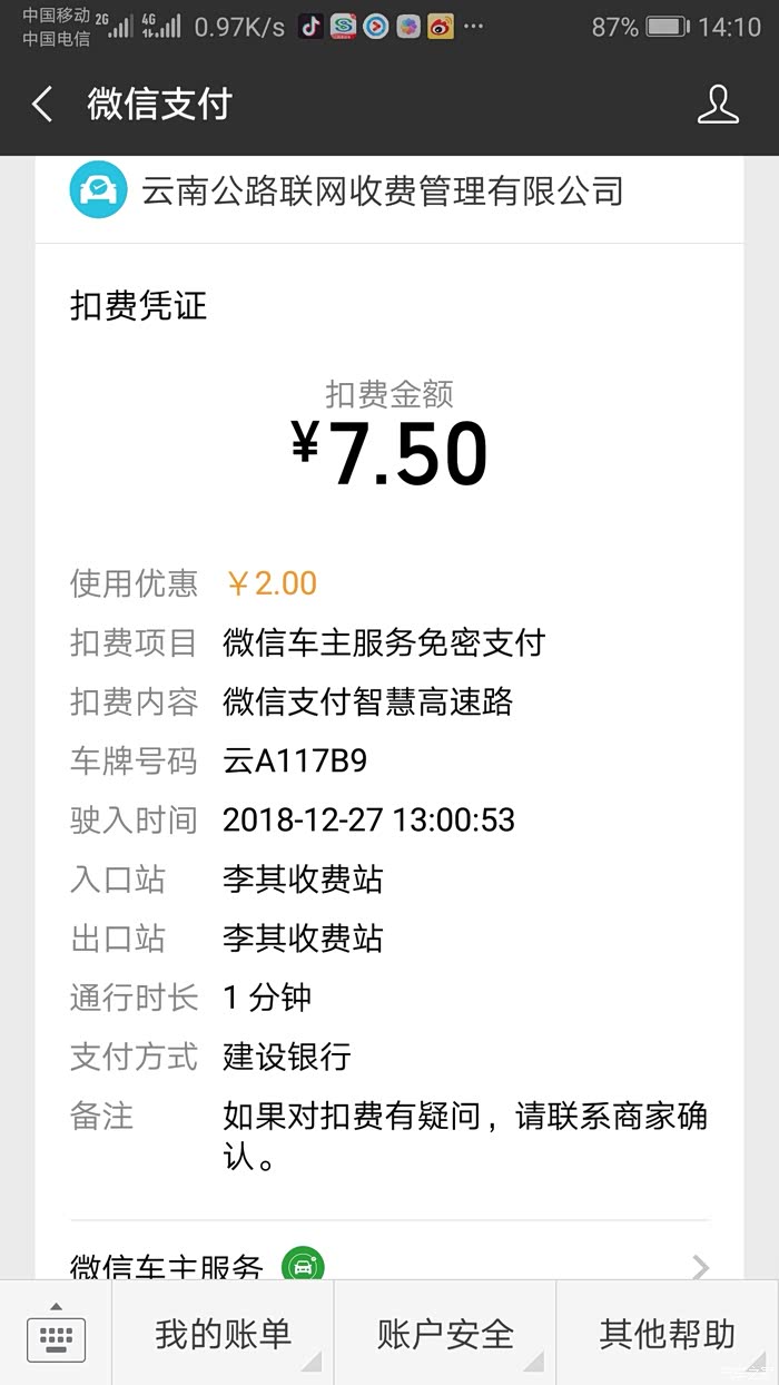 我也装了个游云南并绑定了微信免密支付,但我etc卡上还有2000多元钱,现在使用恐怕没有微信折扣,