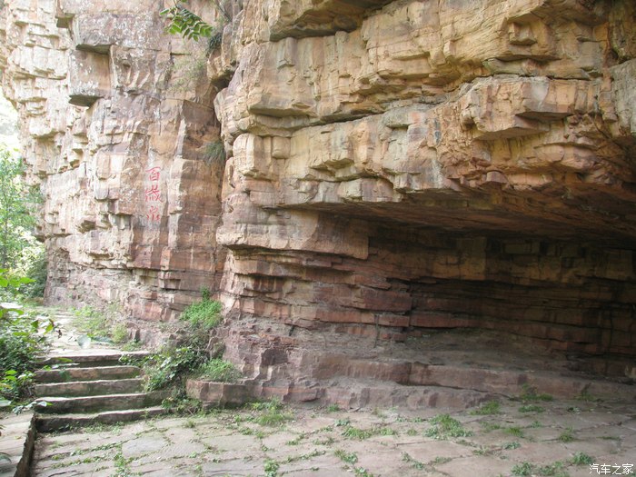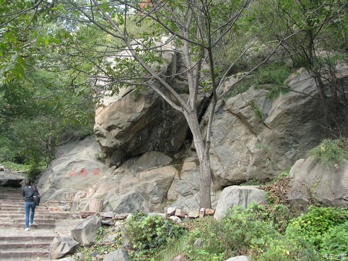 什么卧驼峰观音洞,一个上山不知多远,一个越过山头向下而去不知多远,游客在此纠结,上山?下洞?还是下山或是直奔山脊森林?看看路边躺在地上的游客蒙头而憩,打消了上山下洞的念头,游客各奔西东,我们则拾阶而下,往山口前进,隐约感到哪里大锅菜飘香,烙饼味醇扑鼻而来。不由加快步伐下山而去。结果半路又叉劈了,走到百岁泉看了看几乎没水,原路返回主道继续下山。