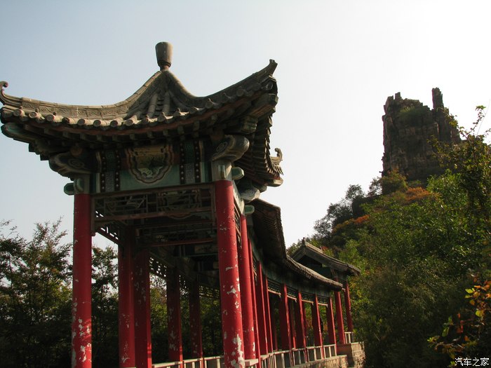 棋盘峰下长廊,可以小坐休息,拍拍红叶和情人还是在不错的,可惜我只带老婆没有情人。