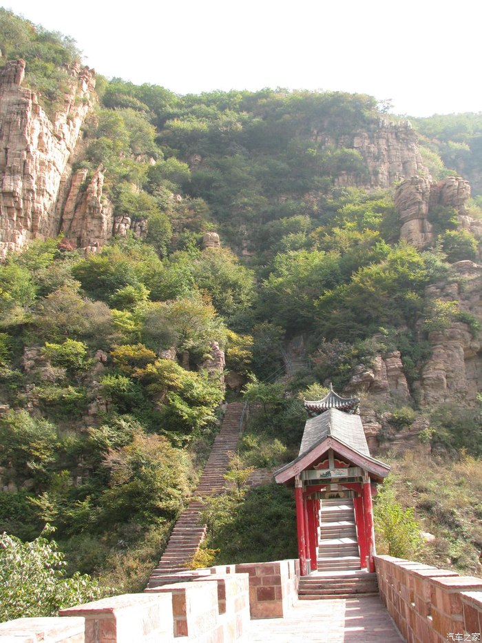 喜爱爬山的我,去年一天游遍邢台云梦山天河山,双腿也没有这么不争气的直打颤。嶂石岩大小天梯也不过如此,我坐索道而上越过其一感觉也没有那么累。800级台阶!按照普通楼层一层15级台阶,也将近六十层楼高,你的小心尖岂能不望而却步?难怪一批批游客坐在路边气喘吁吁,甚至有的扭头下山,潇洒而去!我甚为鄙视他们,虽然我是下山,人家是上山!