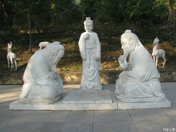 原来 是路边的雕塑,传说古时一牧羊人常来此山放牧,总见俩老者于山顶对弈。一日牧羊 人攀扶达山顶观棋,时山周云雾飘缈,风光循环变化。棋盘边放鲜桃数枚,棋者相继吃桃;牧羊人亦觉肚饥口馋,拾残桃又啃。忽眨眼不见老人,天然棋盘犹存。牧羊人下山,羊不知去向,牧羊鞭早已腐烂。遂回村,景象全异。正是:“仙人一袋烟,世上几百年”。棋盘山因此得名。