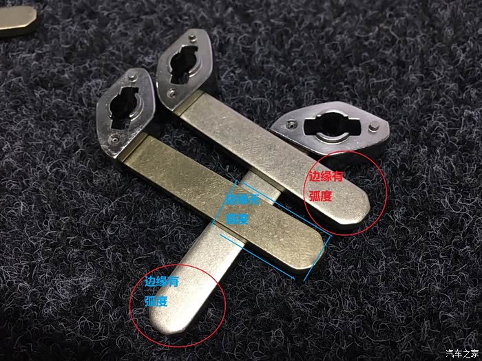 齿条对比 2号钥匙为后期更换的副厂齿条,这种多为下线配件带有锁芯配套的,卖家为了二次销售换上了齿条