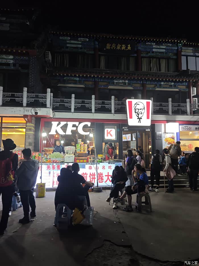 到达了泰安之后是九点半的左右,在酒店办好了入住之后安排好了爱人和小孩的住宿以后,我们和孩子同学两家,两个爸爸带着两个孩子在当地吃了当地的特色饭店,吃了热辣炒鸡和煎饼等之后简单做了修整,十点半准时向泰山的红门出发。从酒店打车过去,用了13块钱,由于我们登山的路线和下山的路线不是一条路线,所以我们选择了没有开车过去。到达红门的时候,大概是11点半左右,从红门进去之后,往里面要走一段的路程才能够到泰山的检票口,进了检票口之后就看到了很多的人。它的大概路线是先从南天门再到中天门,再到北天门。由于是晚上爬山,但是人流量还是超过了我们的想象。根据现场的情况来看,大多数还是大学生特种兵比较多一点,占比应该能占到90%以上。其中也看到了一些60岁左右的老年人和七八岁左右的小孩。我们到达了中天门的时候,大概用了三个小时的时间,因为每到一个大一点的景点的时候,夜晚的灯光会比较亮。沿路会有很多的售卖食物和水的,一些店铺价格还是非常的公道的,烤肠十块钱三个,矿泉水两块钱一瓶。整体来说,泰山的里面的物品价格还是比较的合理的。但是过了中天门之后,再往上爬的时候,难度就稍微要大一点,特别是到了18盘的时候,基本上是人挨着人,由于台阶的倾斜度也比较大,所以个人感觉还是比较危险的,一旦上面有人掉下来之后,后面的人都会被压到,但是人流量特别大,所以基本上是走三步要停一下,走三步要停一下。最终到达了天街的时候,我们是四点半到达的,也就是全程大概用了不到五个小时的时间。