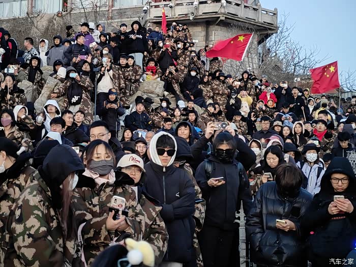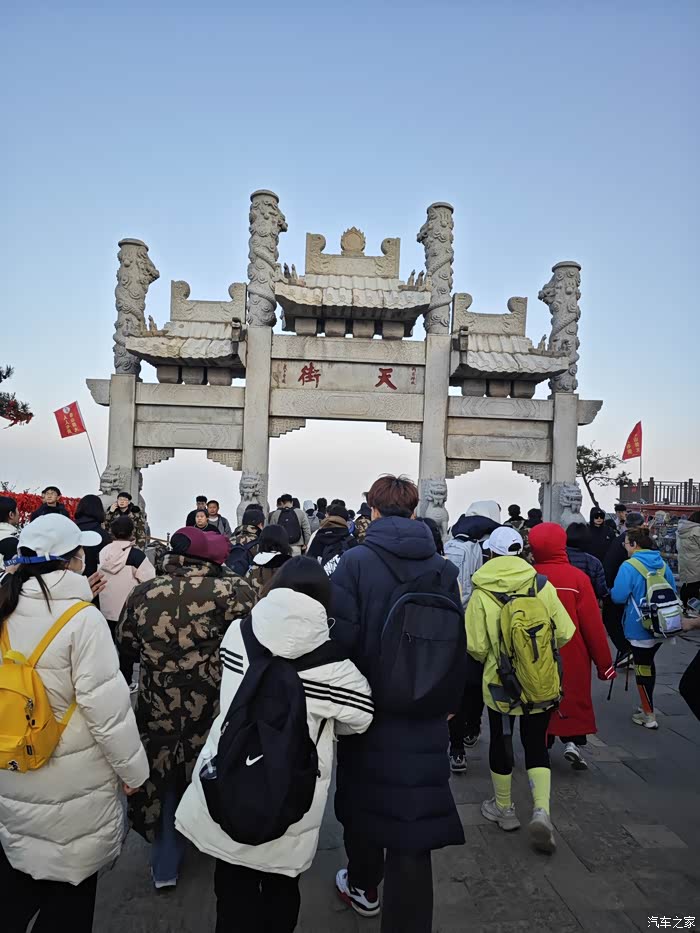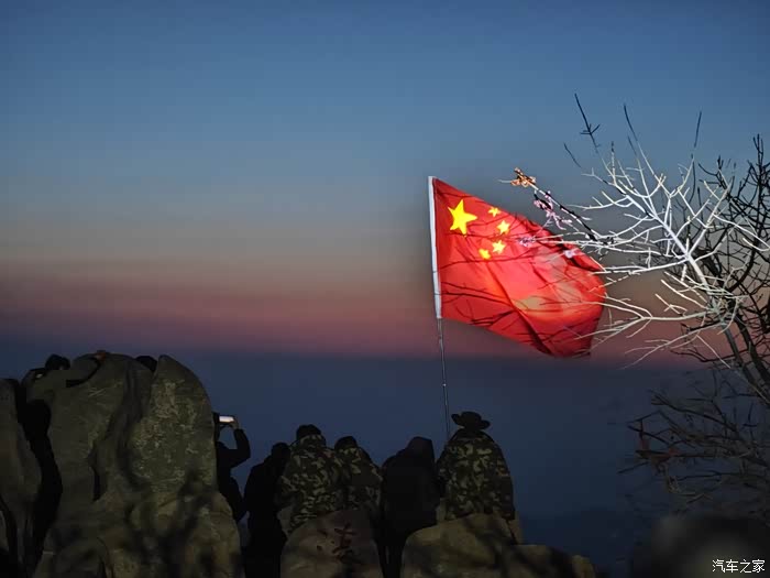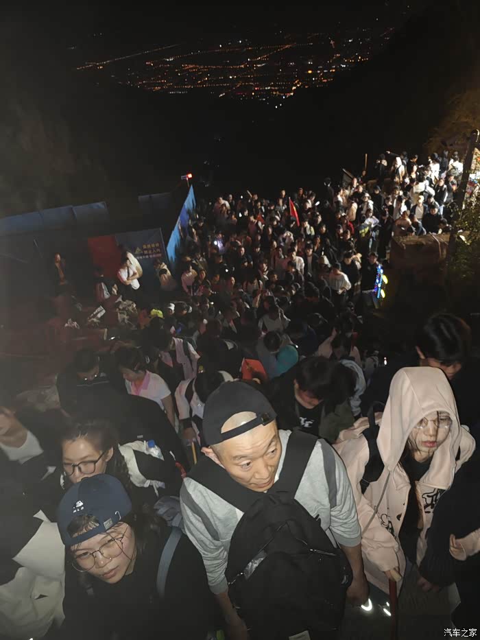 当天的日出的时间是5点33分,非常幸运赶上了大晴天,也就是我们在登顶了之后,在上面大概是呆了有一个小时的时间。最终,在日观台的那边找了一个比较不错的位置,由于上去看日出的人太多,所以还是比较拥挤的,这段时间在山顶吃了一点夜宵。一个八宝粥,十块一个烤肠,十块这个价格还是比较公道的我个人觉得。5点33分,太阳出来的时候,那一刻确实非常的美,在最前面的大学生扛了很多面的红旗。在太阳出来之前,用手电筒照亮了红旗,拍出来的画面也非常的美丽,非常的漂亮。在太阳升起的时候,感受了那一个红红的像鸡蛋黄一样的太阳,从海平面一点一点升空的整个过程,这样的感受是我们在日常生活中难以体验的。确实很惊艳。下山的路程就简单多了,据说下山的缆车排队要最少两个小时,因此我们在看了日出之后,直接奔向了缆车的排队的点位。所以由于我们去的比较早,大概排了有半个多小时的时间就上了缆车,从山顶下到中天门的时候,缆车大概用了20分钟左右的时间,从中天门再下到门大门口的时候,我们乘坐的是大巴,大概用了也用20分钟的时间。所以基本上我们到了八点半左右的时间就已经到了酒店进行了简单的十不早点用餐之后就赶快去补觉了。夜爬泰山第二天之后确实会非常的疲劳,但是却也能感受到非常的充实。我想在五一劳动节来临前,那么我就以这样的夜爬泰山来向全国的劳动者致敬吧!预祝各位车友五一劳动节快乐!!!