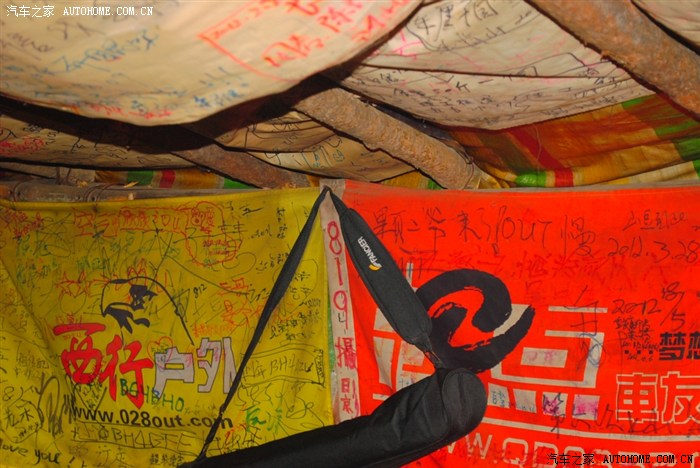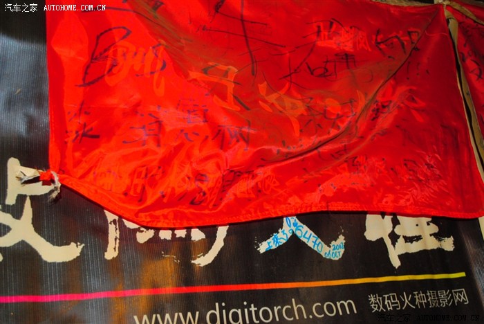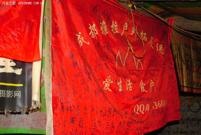 各种自驾团的旗帜和上面的签名