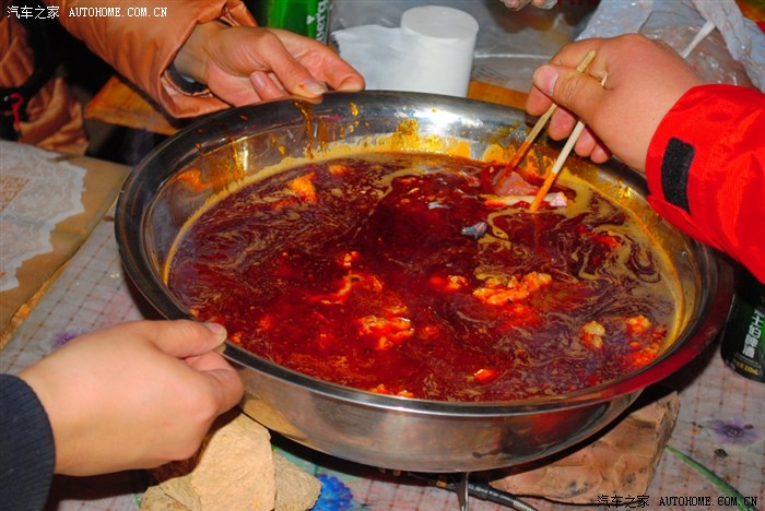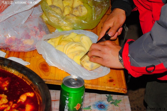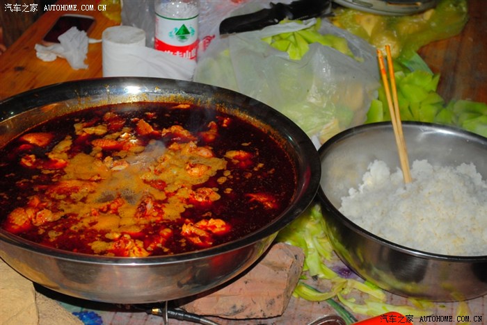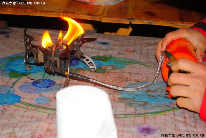 吃饭要排队,因为还有其他的团。自己带的汽油炉子