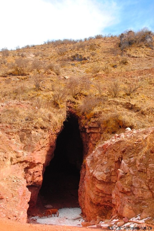 一个矿洞,外边骄阳似火,里面由于有结冰,却寒冷刺骨,真是冰火两重天。正在此休息时,一位川A牌照的三菱(40多岁)主动对我说,上车,小伙子,我带你上顶,好人啊