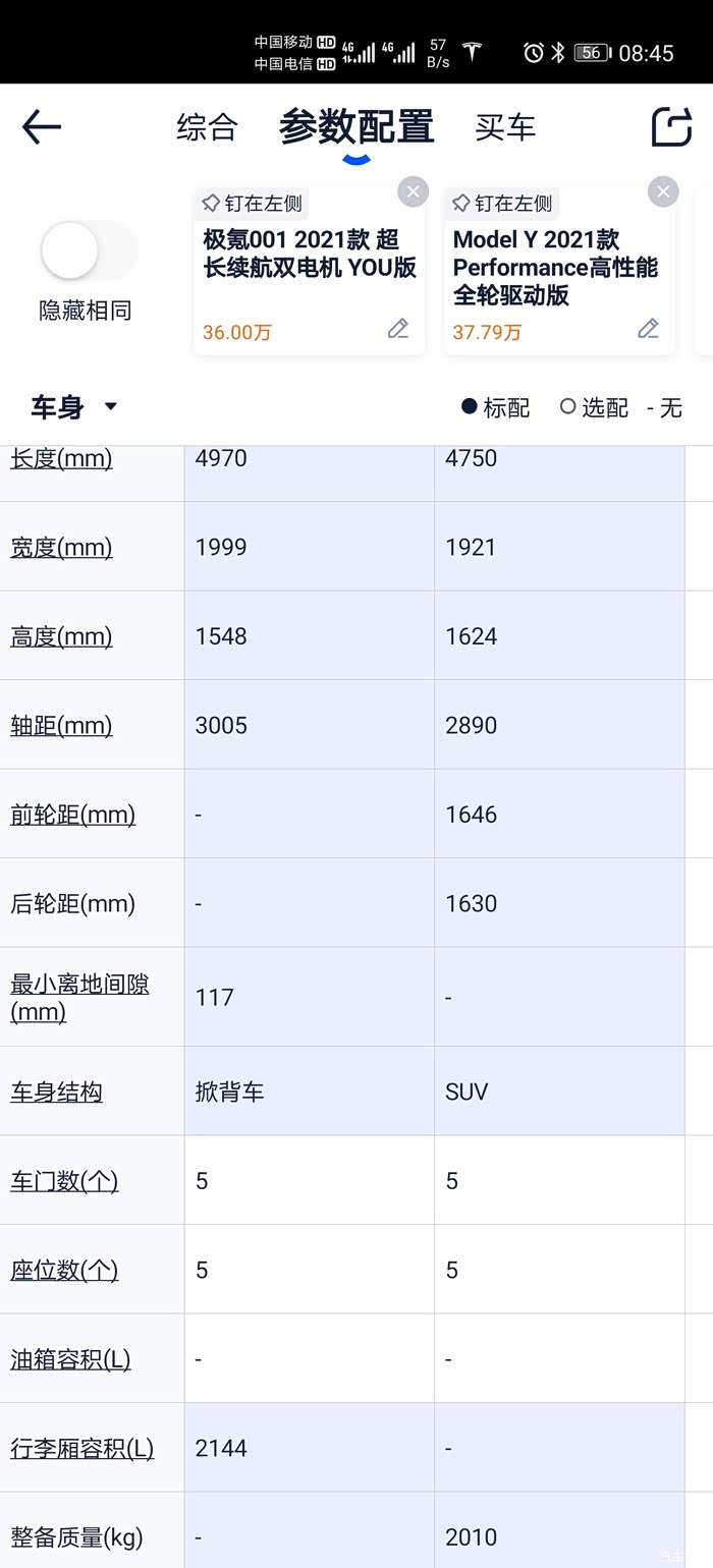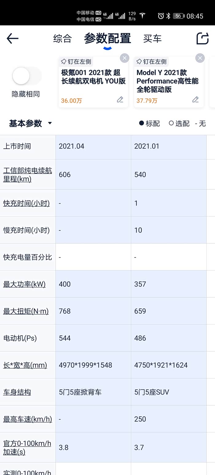 两车风阻系数小数点后两位是一致的0.23