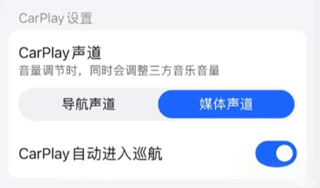 改成媒体声道后,就不会在用CarPlay导航和音乐切换时会炸音的问题了。但是也不可以单独调节导航音量里,因为都走媒体导航了,不过总比炸音强。