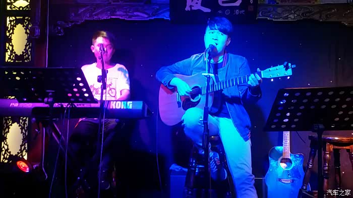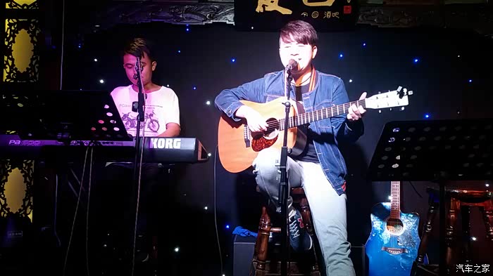 右面的吉他手,是这次跟我一起来的朋友,应邀请客串一下,我怎么认识的都是吉他手?中间这哥们,看这身行头,我开始还以为也是酒吧的歌手。后来发现是客人,拿着手机看歌词,暴漏了身份。叙完旧,该回去睡觉了。