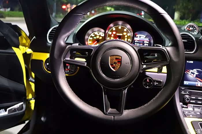 二、选配太坑,说是选了6万多的配置,也就是一些无用的,比如黄色仪表表和黄色内饰板就1万多了,19寸的cayman s将近2万也是非常丑,双尾候和轮毂盖加起来也要将近1万,也就一个选对了就是SC组件!建议大家一定要选上大4眼和真皮内饰,这些后期改装的成本太高了!