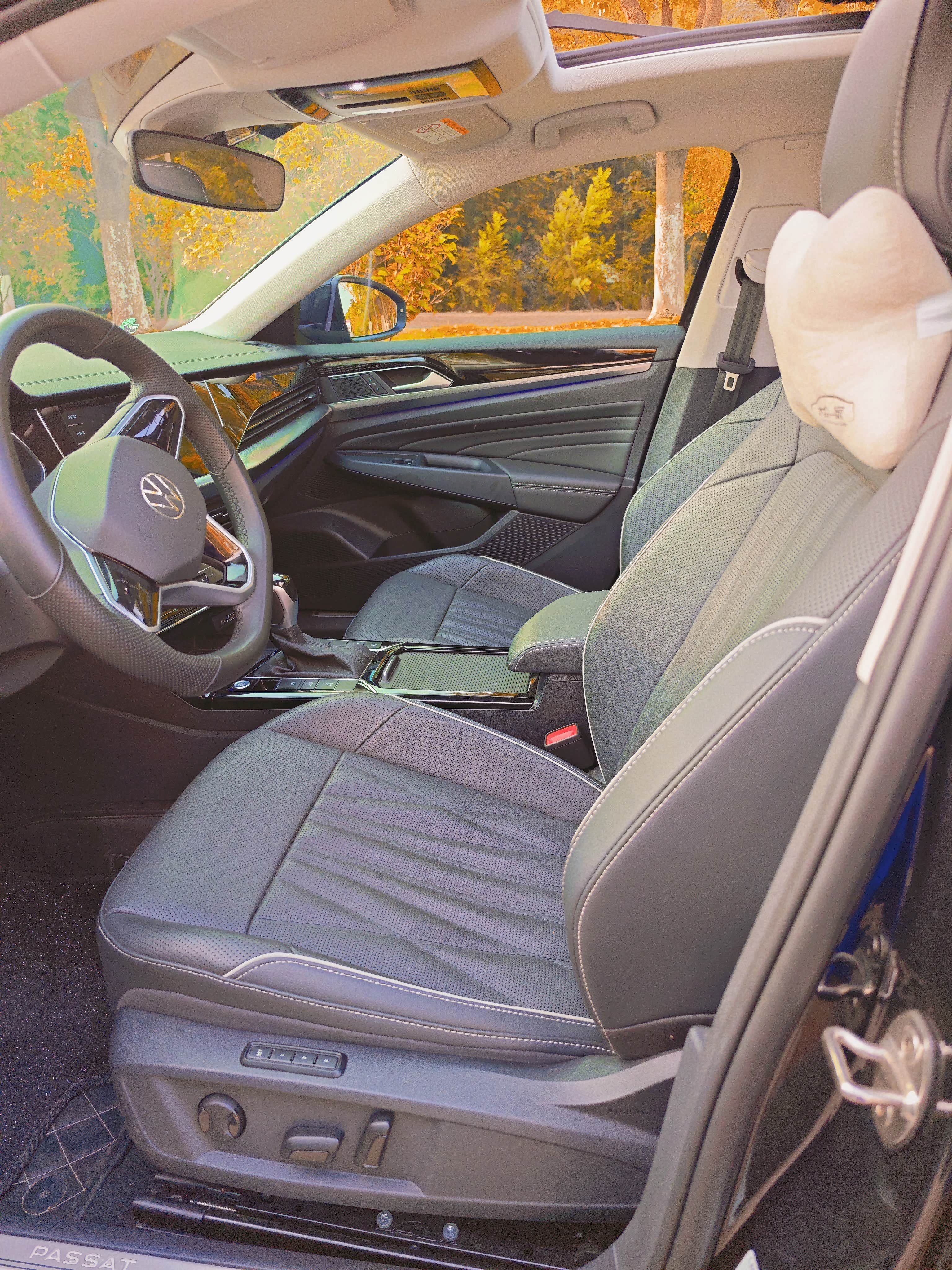 如果说动力是“够用且安心”,那空间就是帕萨特的绝对优势,作为一台标准的B级轿车,帕萨特在车内空间上的表现,可以说完全对得起“标杆”这两个字。前排不用多说,座椅调节范围大,驾驶位很容易找到合适的姿势,真正让人满意的是后排,后排腿部空间非常充裕,即便是身高一米八左右的乘客,坐进去也能轻松翘起二郎腿,平时接送家人,或者偶尔接待客户,后排的空间和舒适性几乎从来没被吐槽过。