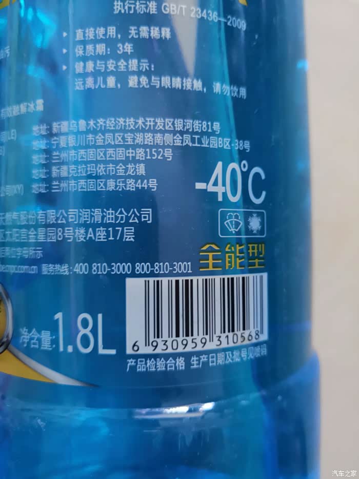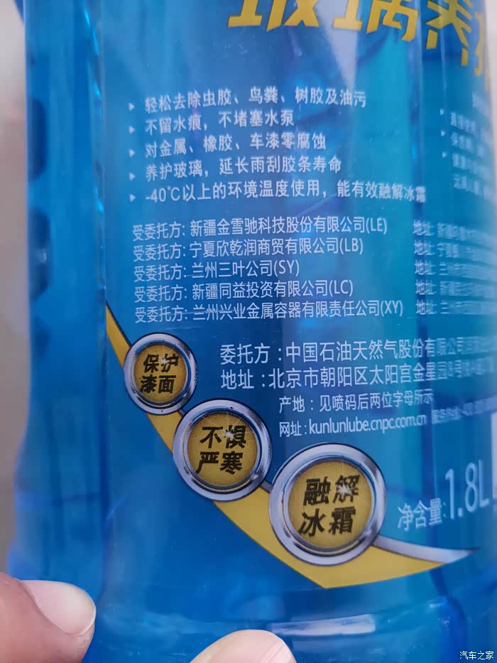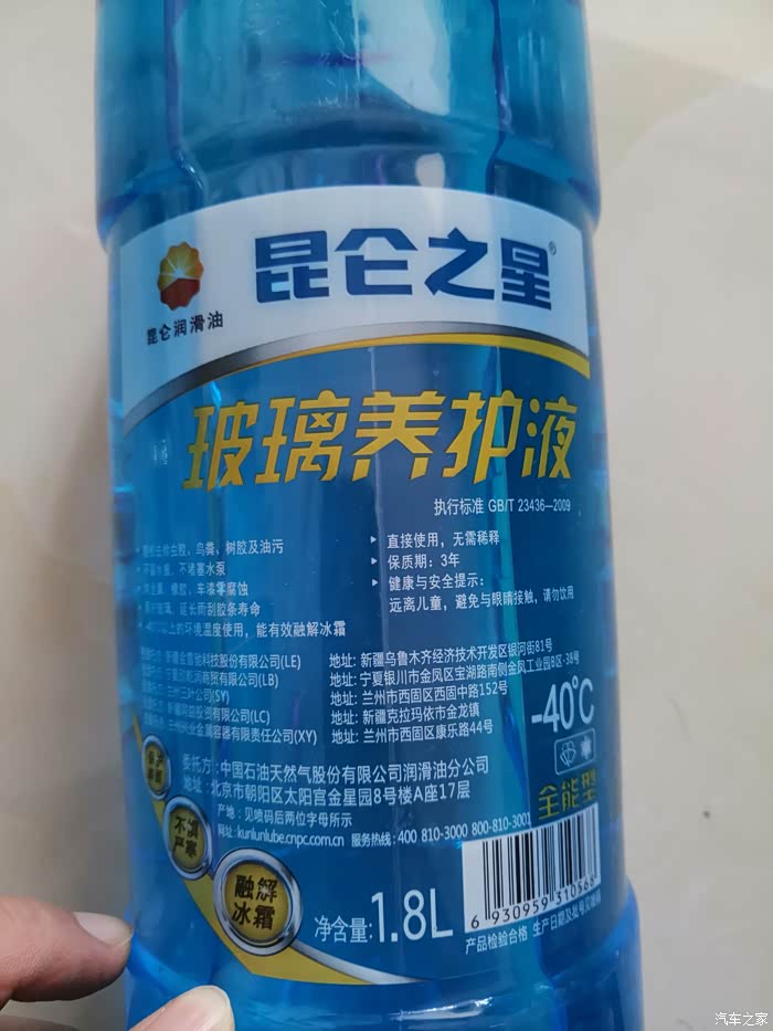 这款昆仑之星玻璃水是我在加油站的时候买的。这款玻璃水是中国石油的加油站里的特供玻璃水。光是看包装和颜色,就能感觉比之前那款玻璃水更加高端一点。但是价格确实差不多的。这也算是中国石油给我们广大老百姓的一个福利吧!这款玻璃水也是一款冬季玻璃水,零下40度的。这宽玻璃水到现在我还没有用过。不太清楚它的具体性能怎么样。但是光看细节的话,感觉要比那一瓶更好一些。下次我把这两瓶分开使用。再谈一下使用感受。
