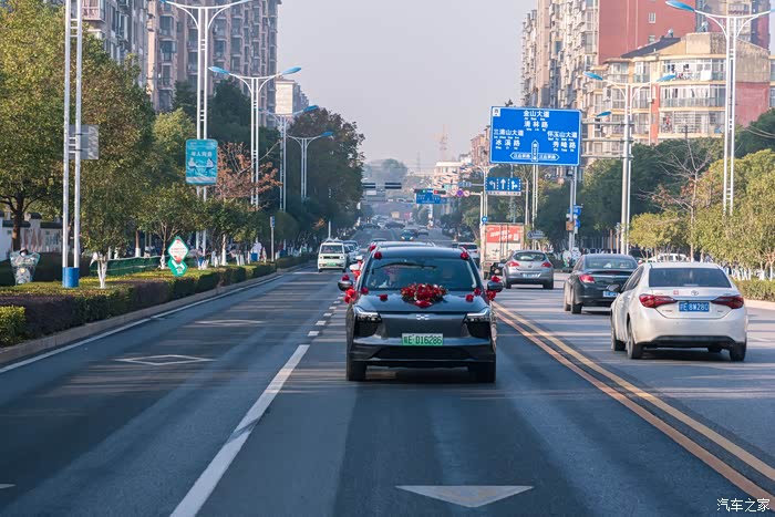 风和日丽,天高气爽。在这个暖洋洋的周未,早上7点就起床出发去50公里开外的同事家参加他的婚礼,因为同事是江西上饶本地人,爱驰U5作为上饶本地生产的新能源汽车,所以在出发前就听说同事特意联系了6台爱驰U5电车作为婚礼迎亲车队,让婚礼显得既有特色又节能环保。