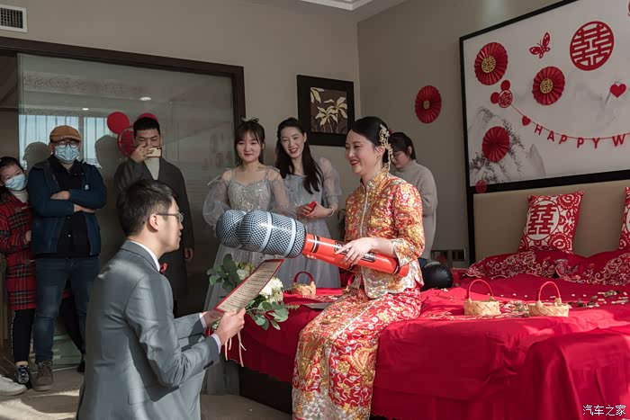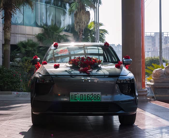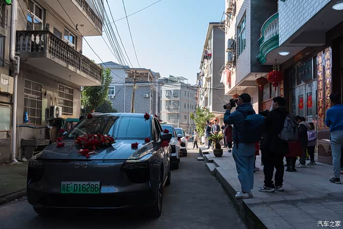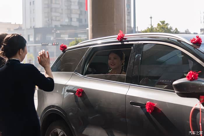 当然,6台爱驰U5组成的迎亲车队,也从四面八方陆续到达现场,扎上喜庆艳丽的红花,等待美丽的新娘入座。