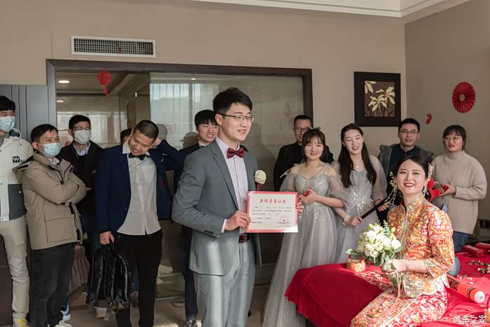 因为新娘是江西南昌人,所以前一天就入住了婚庆酒店,新郎和亲友团,一大早就在既定的地点集合,准备迎娶新娘回家啦。