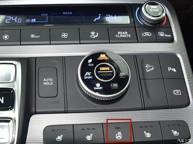 2、点击中控台下侧的方向盘气流图标按键,开启方向盘加热功能。
