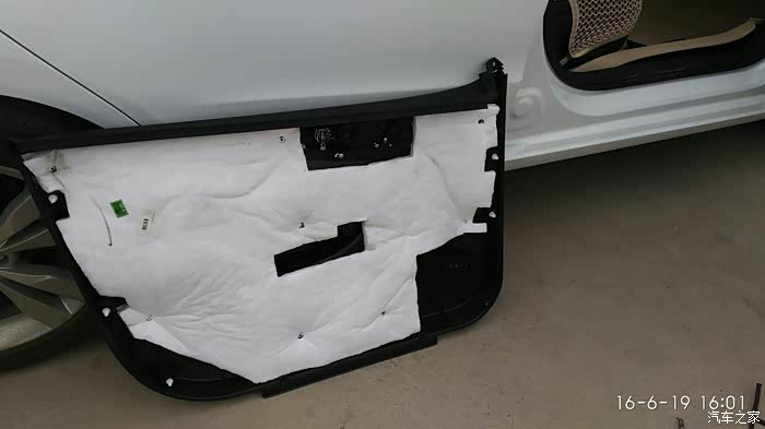 拆开的车门,里面白色的填充棉挺厚实的,用料实在,只是出现门锁故障,实在是不该啊!这是品控问题还是个案呢?希望不会出现第三个门锁故障!