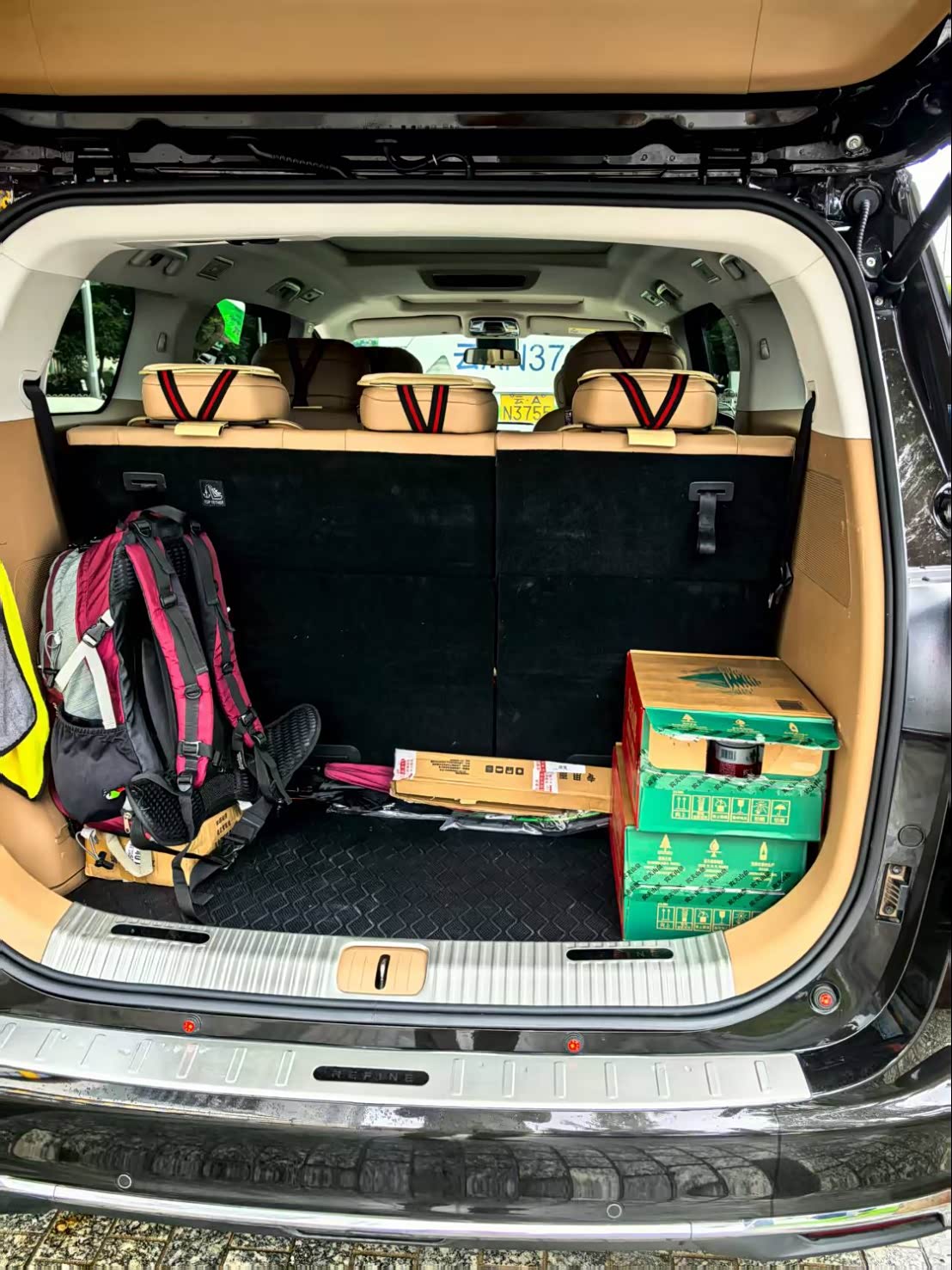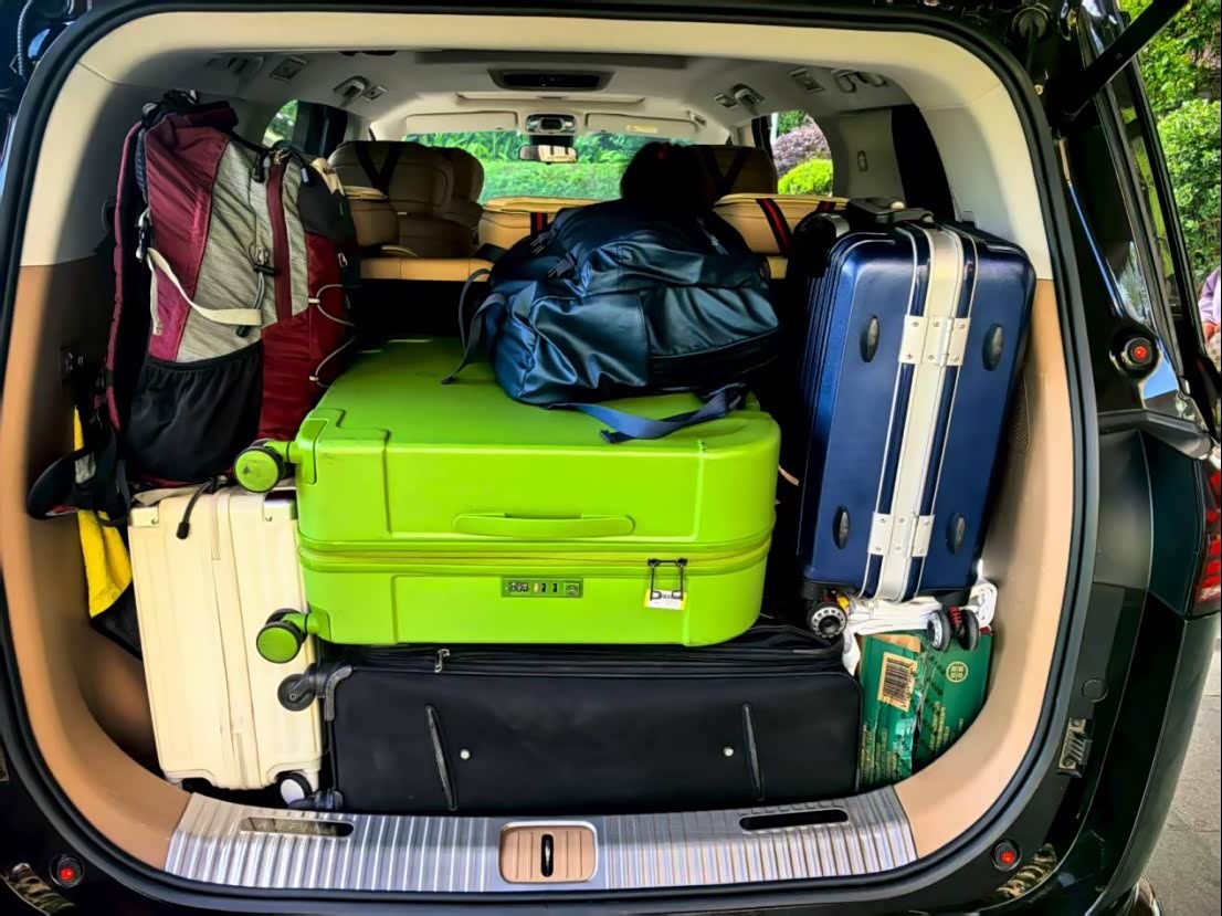 我是从昆明出发的,单趟大概路程有450公里左右,来回900公里了,路程不算近,出发前准备了不少行李,瑞风RF8的后备箱够大,我一点不担心,想着能用到的就都装上了。光水就装了两箱。