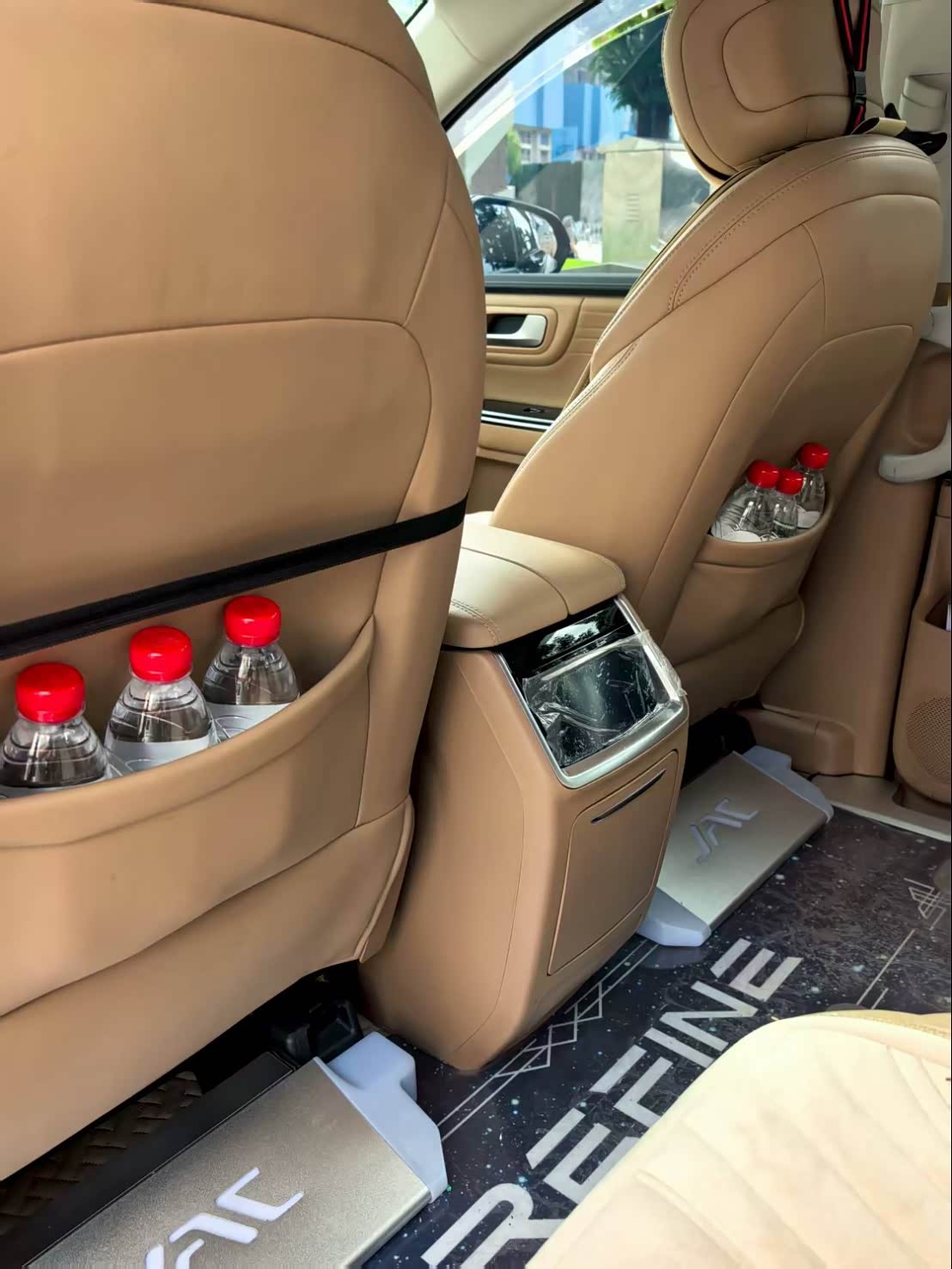 座椅后面的储物袋里也装上了水,方便路上补水。