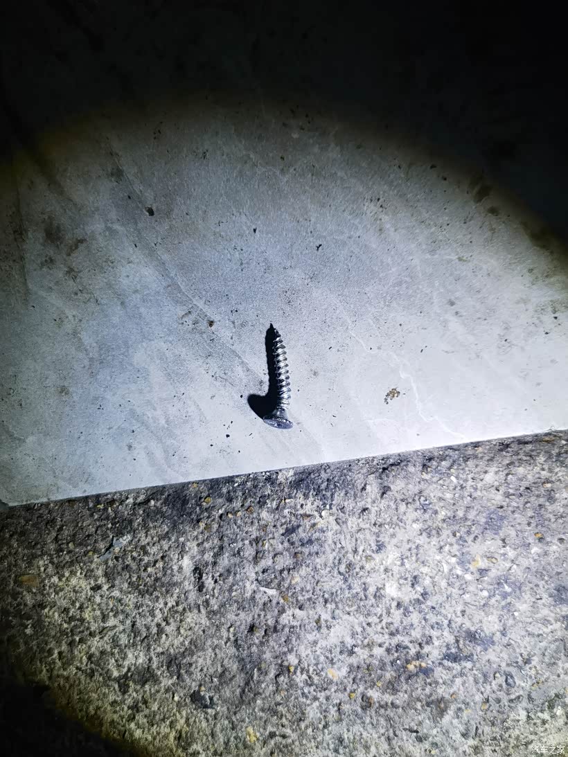 🚙来到车后方仔细一看,原来是右后轮在停车时,车轮中间位置扎上了一颗钉子,才导致车胎快速漏气的。