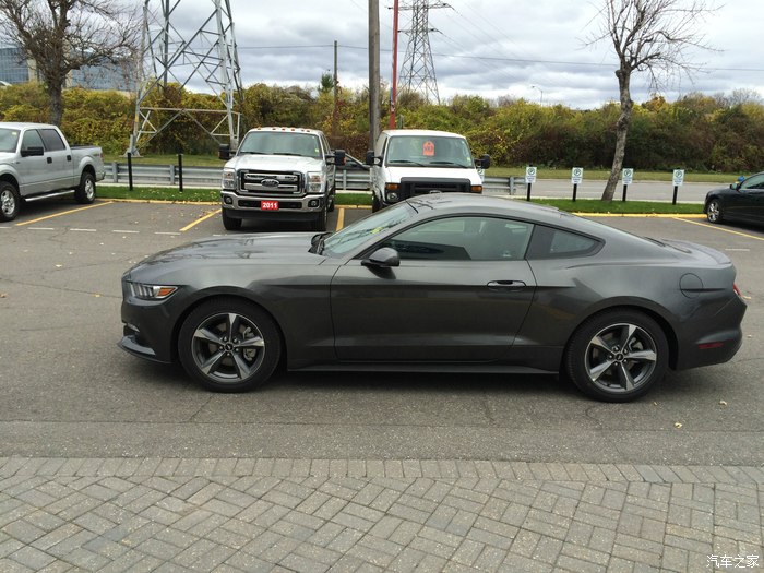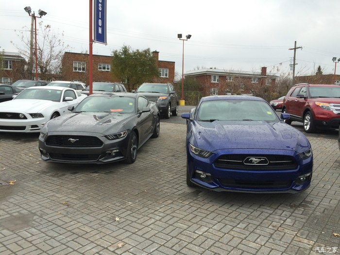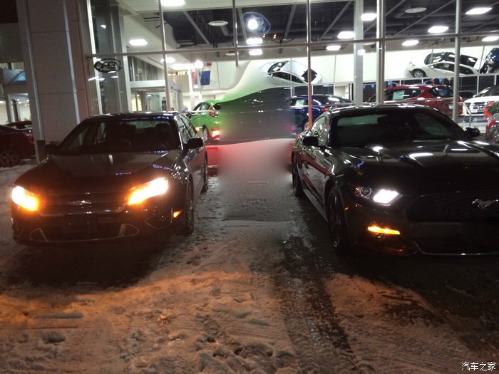 决定入手mustang之后就去dealer看车,其实之前早就看好了。周六下了订单,周二提回了日思暮想的mustang。至于为什么选V6,dealer现车就只有两辆GT,两辆V6。GT马力太大,很担心冬天雪地里失控,楼主也不是喜欢飙车之人,就选了这辆灰色的V6,但是那辆50周年纪念版的蓝色GT真心帅气啊。 不唠叨了,上图吧。都是手机拍的,楼主是喜欢单反的人,但是最近实在太忙没时间去好好拍mustang