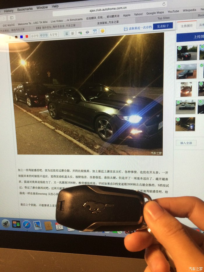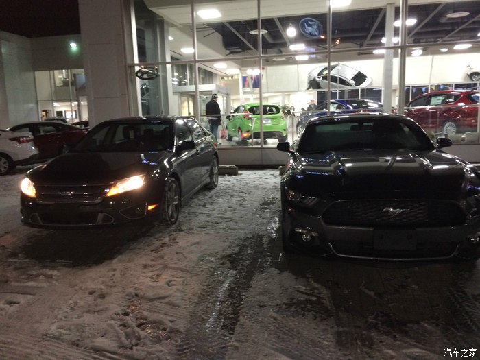 切入正题吧。去年mustang发布的时候就很喜欢,关注了很久。上市以后,看到现车更是迷的无法自拔,但是一直没有下手,原因就是楼主在的地方一年有半年冬天,很担心mustang在雪地里没法开。而且家里人的意见也是换个四驱SUV,Q5之类的。 换车的事就一直搁置了。但是楼主心里对 mustang 一直念念不忘,两周前跟家里视频,家里人见我那么喜欢,也就同意了,他们说就当给自己的一个奖励吧,换个好心情,但是一定要注意安全。这学期课业忙的不行,周末基本在图书馆度过,最近更是每天晚上作业做到1,2点,早上8点还要去上课,楼主通过之前3年的努力,当上了学校的助教,每学期的工资有将近3000加元,mustang的钱都是trade-in之前的fusion和自己攒下的。