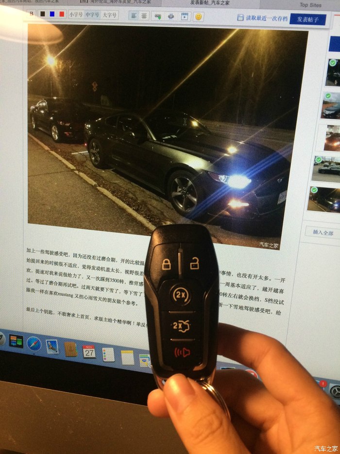 野马的钥匙很给力啊,银色部分都是金属的。还带有遥控启动