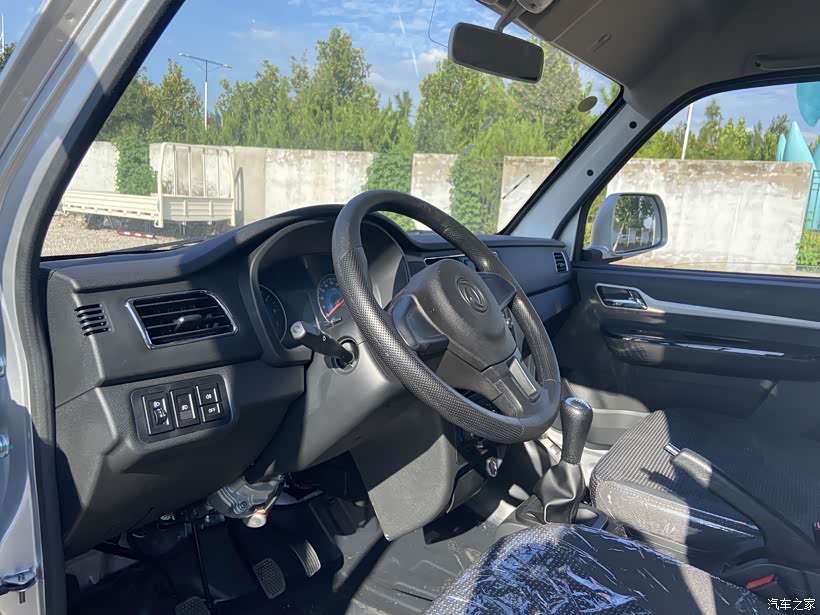 在内部的设计上也并没有放松,从整个的内部装饰上看,它更多是想向乘用车看齐,坐进去之后的中控台采用不规则的纹饰,这样无形中增加了一定的时尚元素,又通过多种颜色的落差感来增加车内区域的分布,这样显得内饰错落有致,仪表盘依旧沿用东风小康货车的经典造型,简单明了,强调实用。位于转速表和时速表中间的液晶显示屏也十分大方、清晰。
