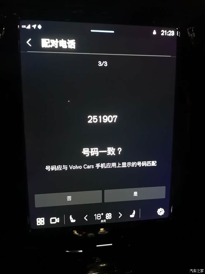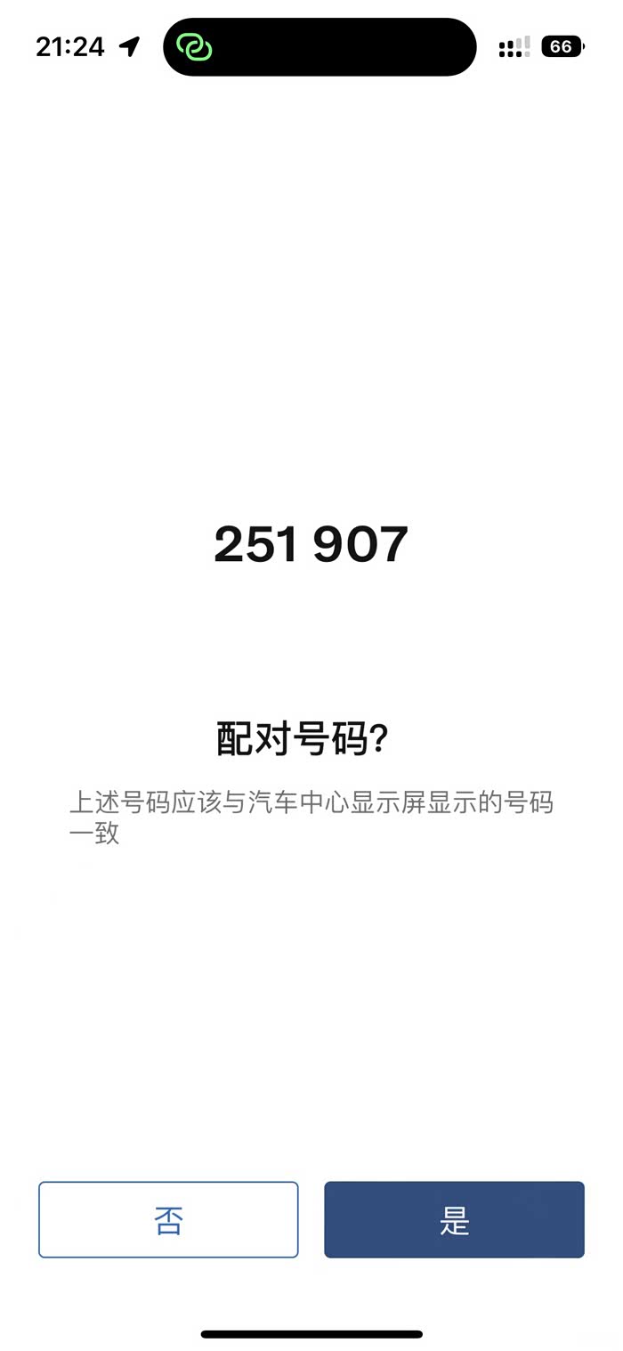 车机屏幕上也会显示配对电话,并确保两把钥匙都在车内。