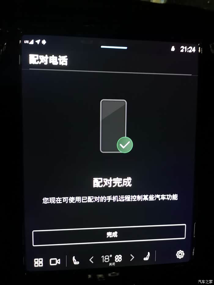 绑定成功后,车机显示配对完成。点击完成结束绑定。