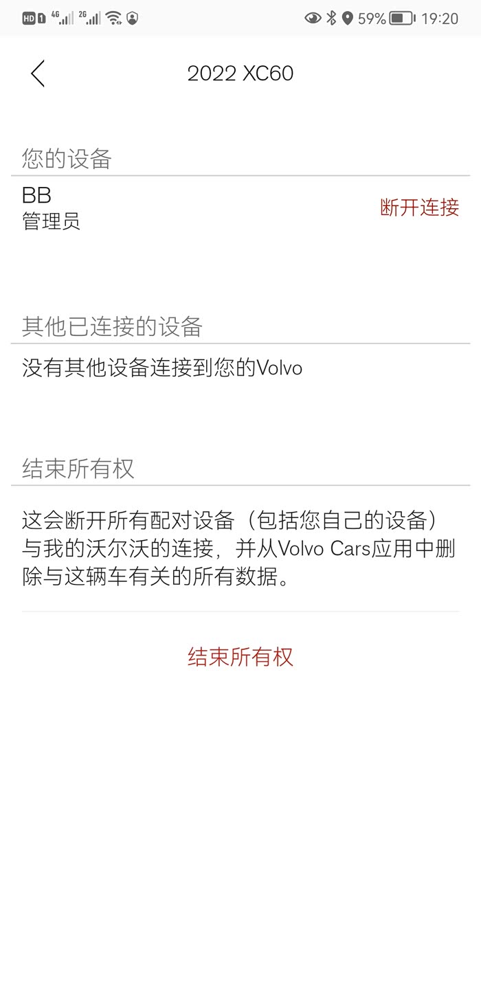 “请打开Volvo Cars App”登录车主的Volvo ID ,点击底部头像标签,关联车辆,选择您的车辆,点击断开连接“